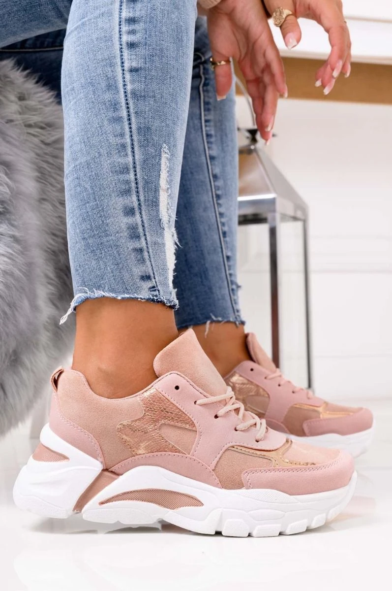 Sneakers Rosa Con Suola Spessa E Inserti Oro Rosa