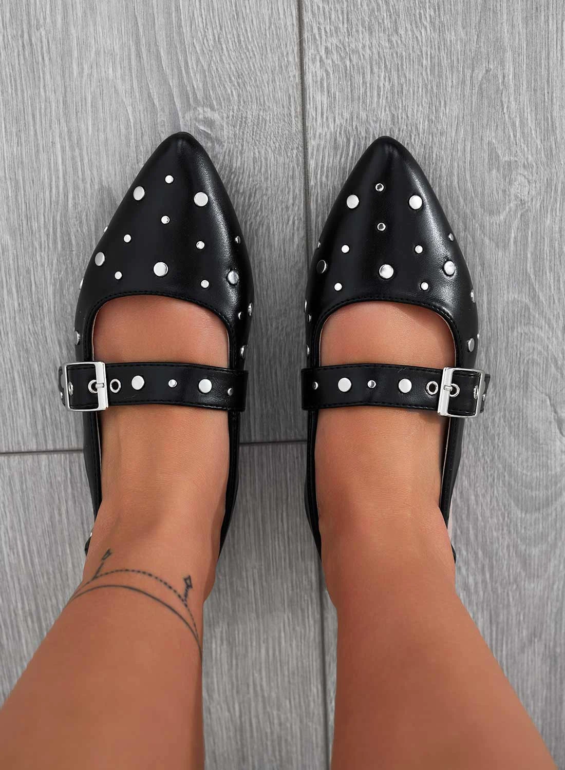 SOFY – Ballerine Nere A Punta Con Fibbia E Borchie Argento