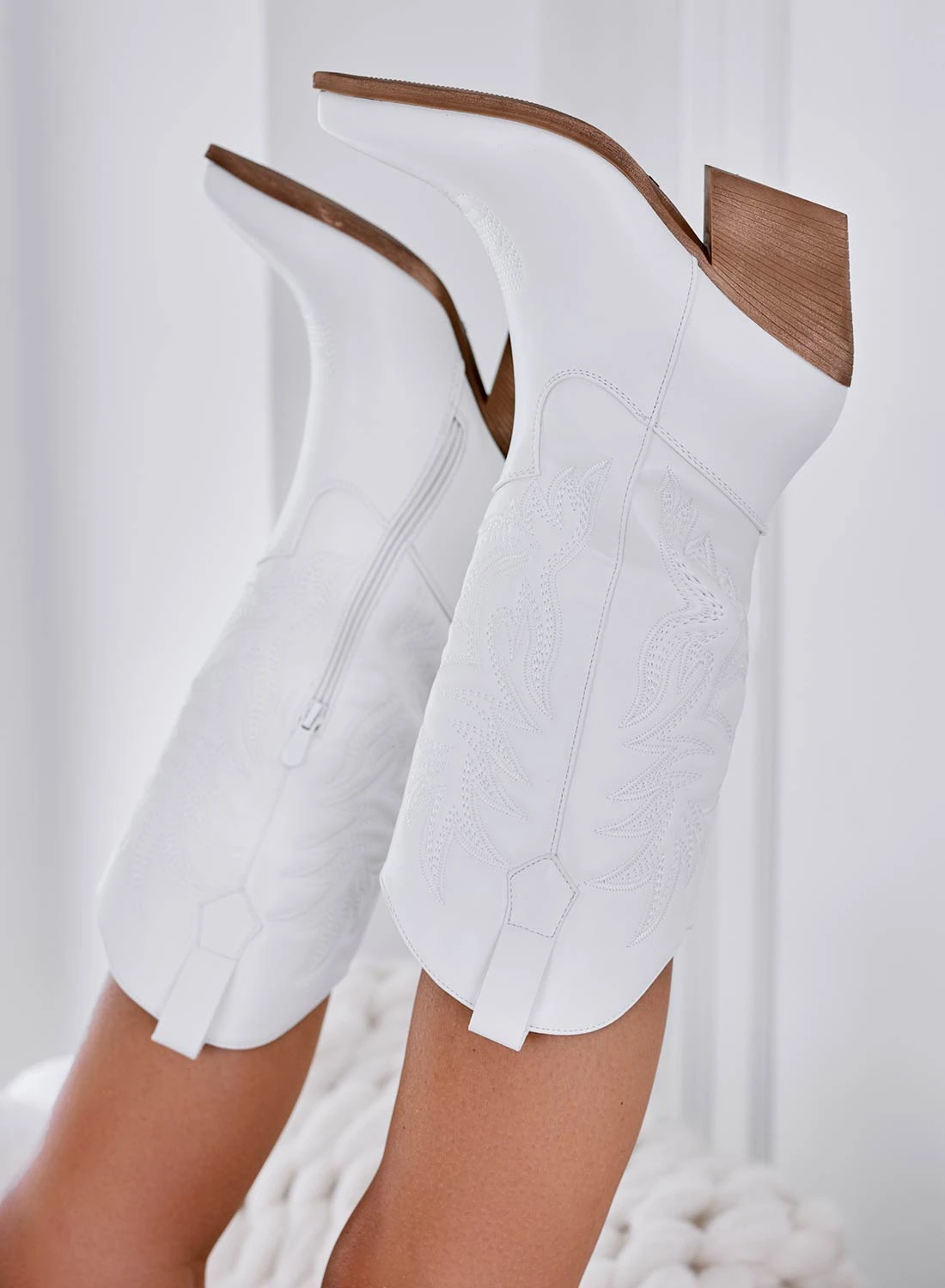 SONIA – Stivaletti Bianchi Camperos Con Ricamo In Rilievo