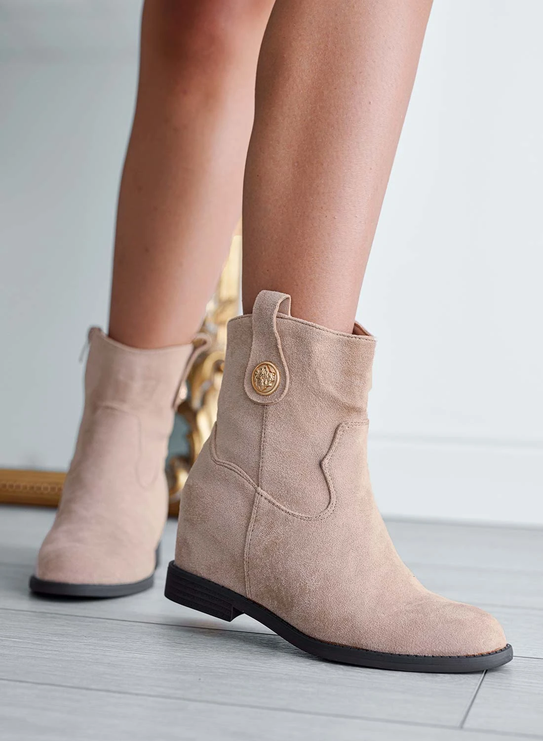 Stivaletti Alexoo Beige Con Bottone Oro
