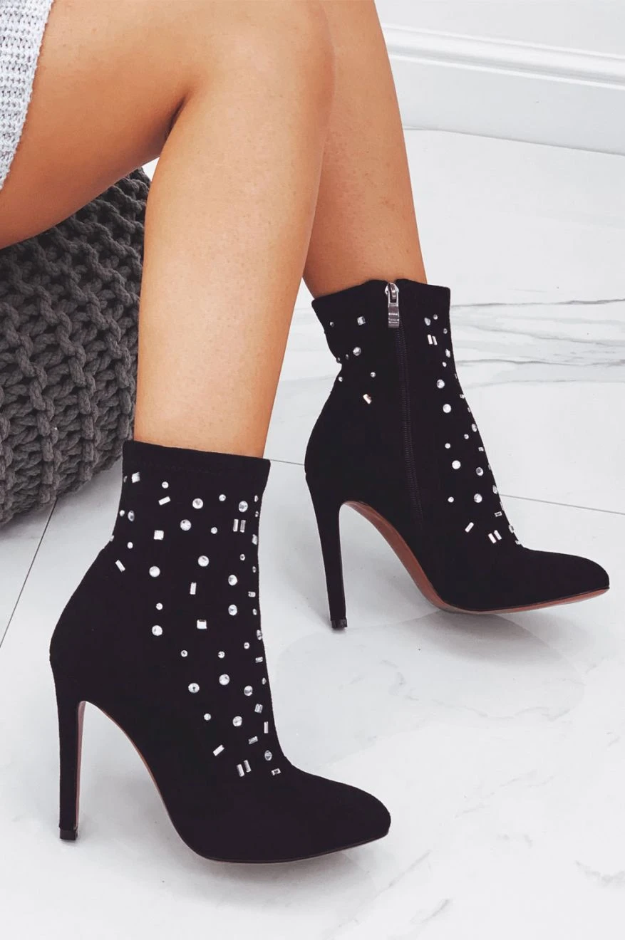 Stivaletti Neri Con Tacco Alto E Strass
