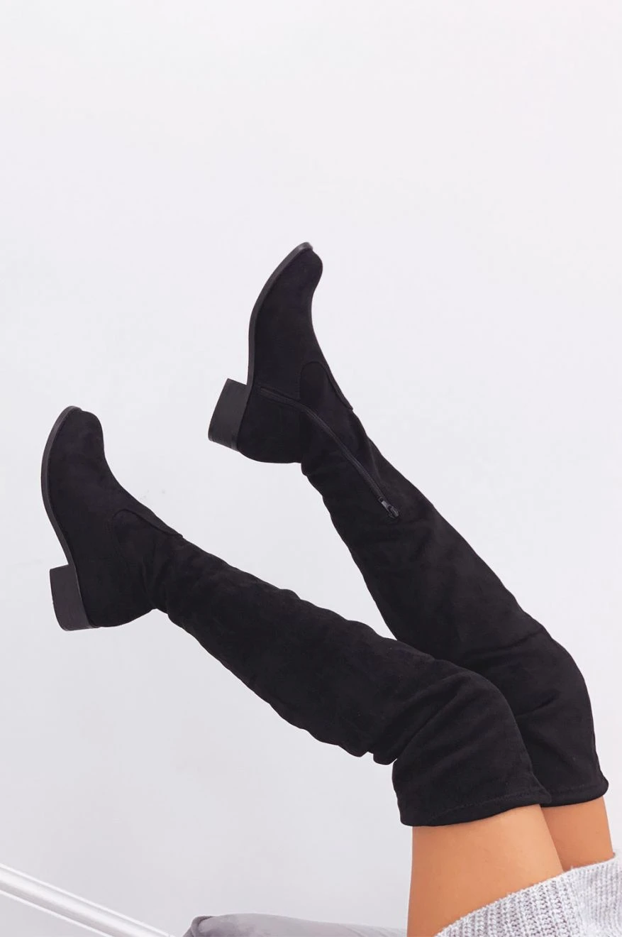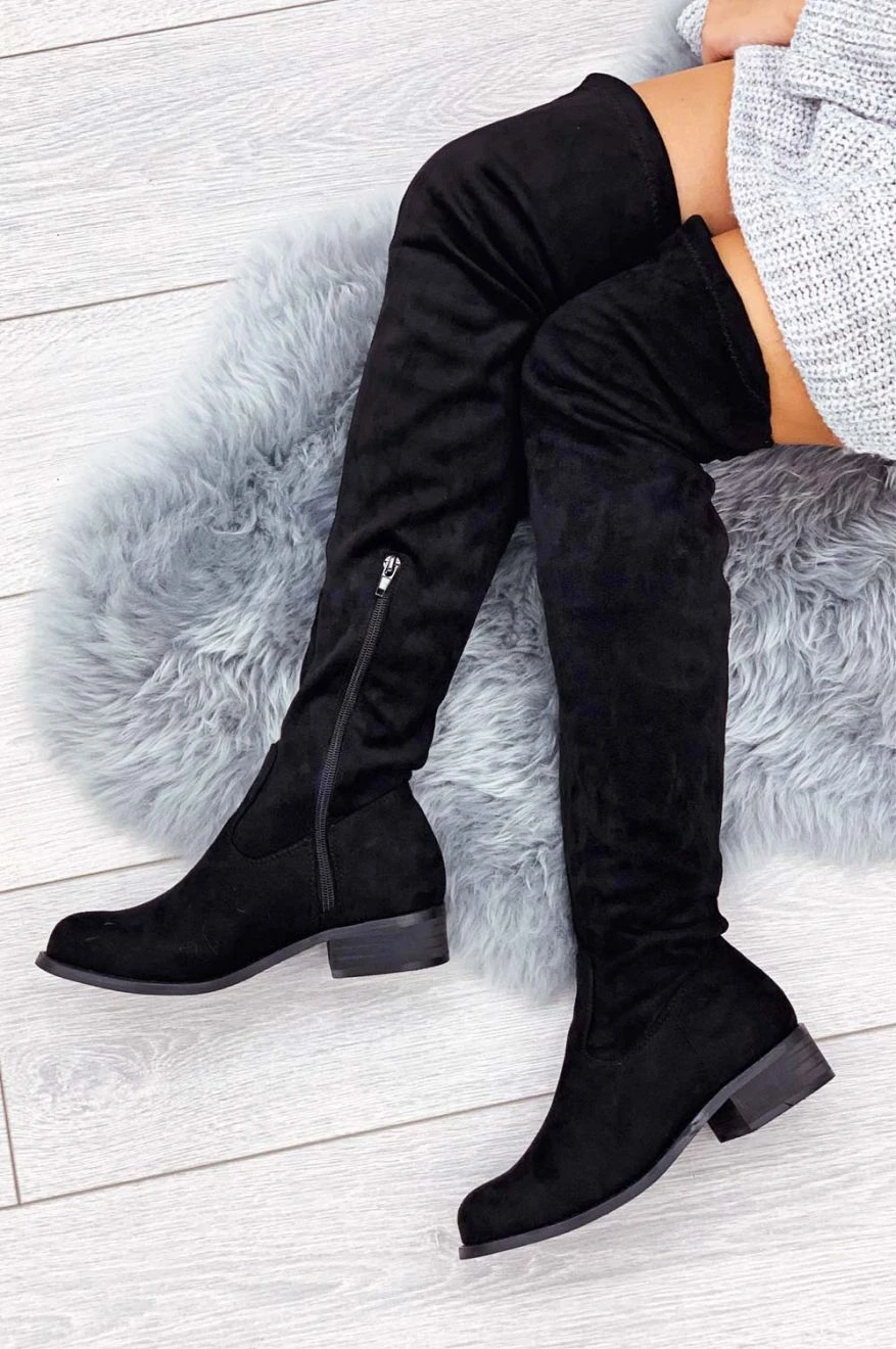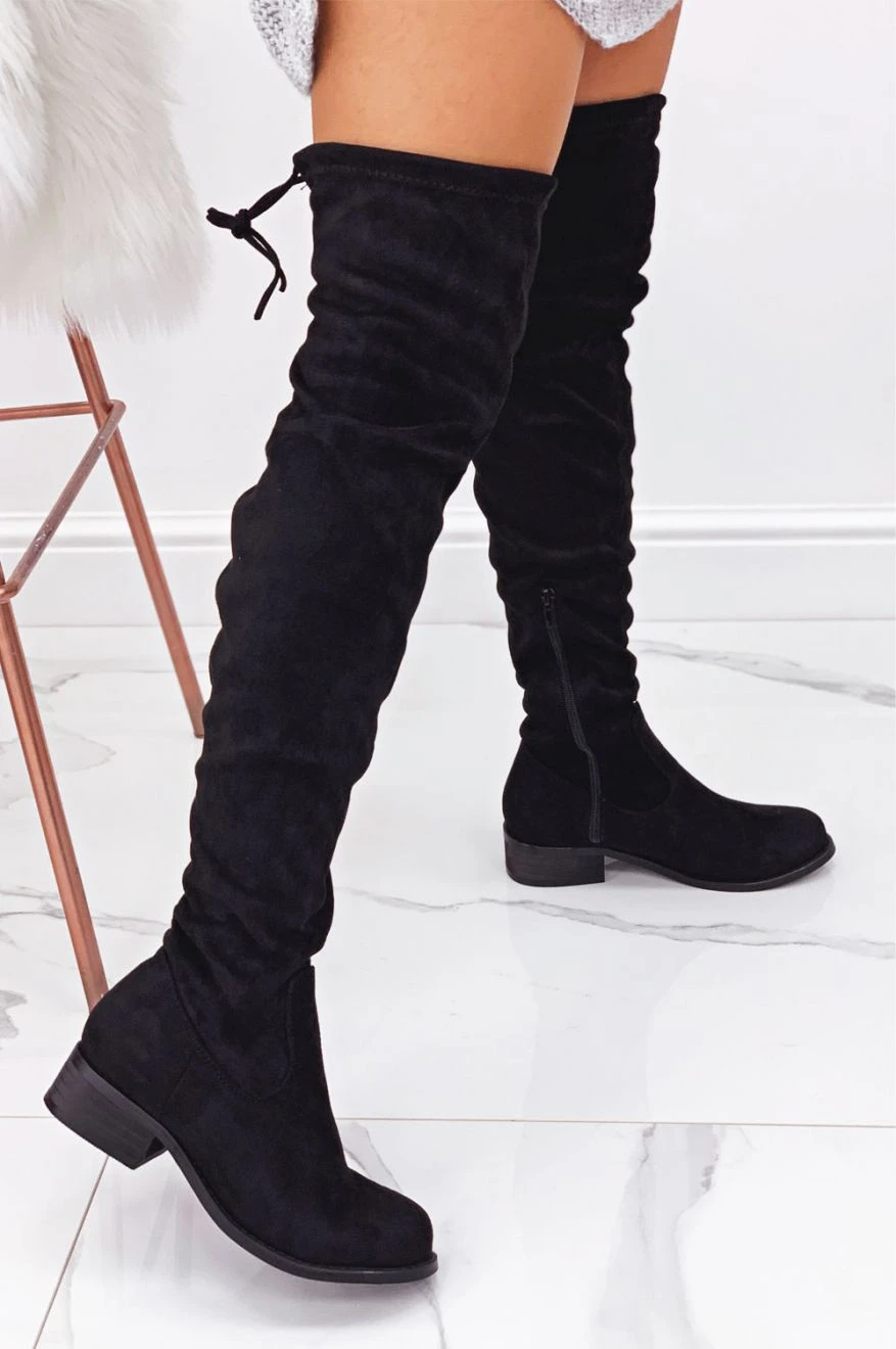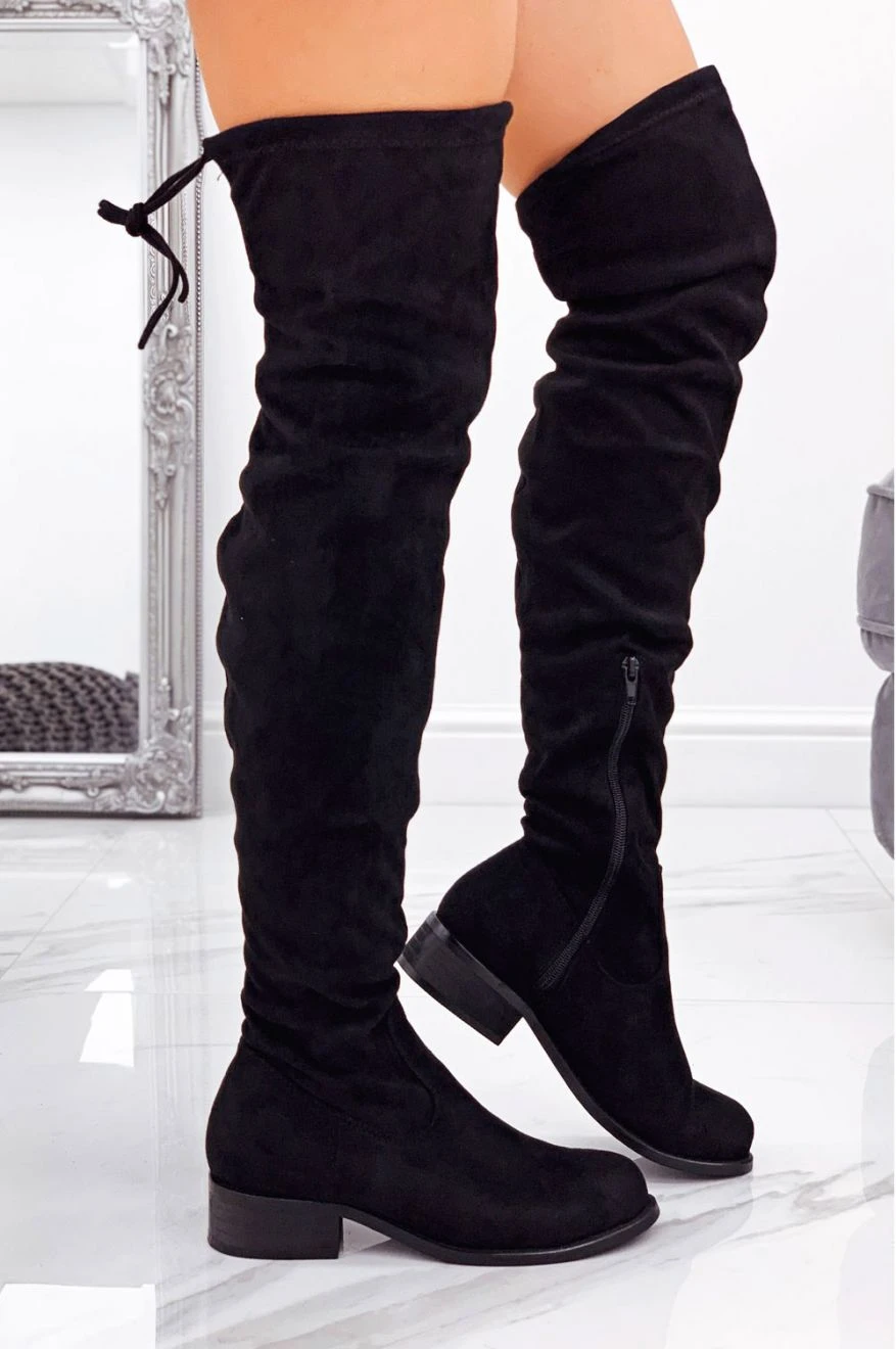 Stivali Neri Scamosciati Alla Coscia Con Laccio