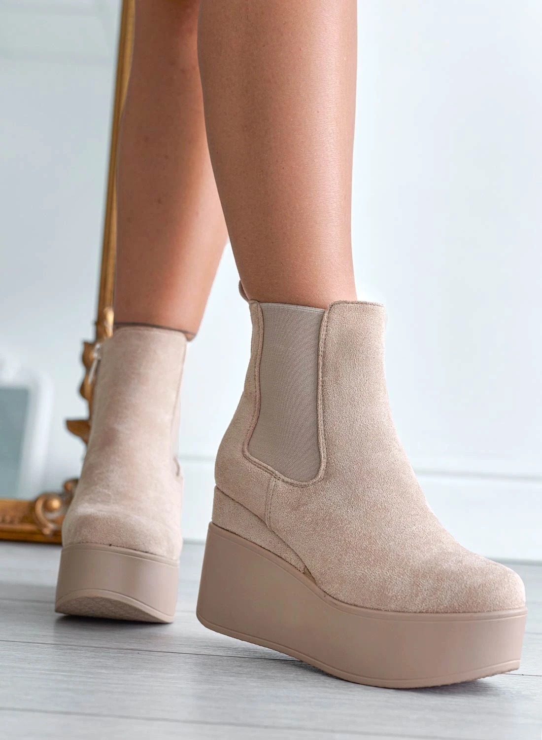 Tronchetti Beige Alexoo Con Zeppa Ed Elastico Laterale