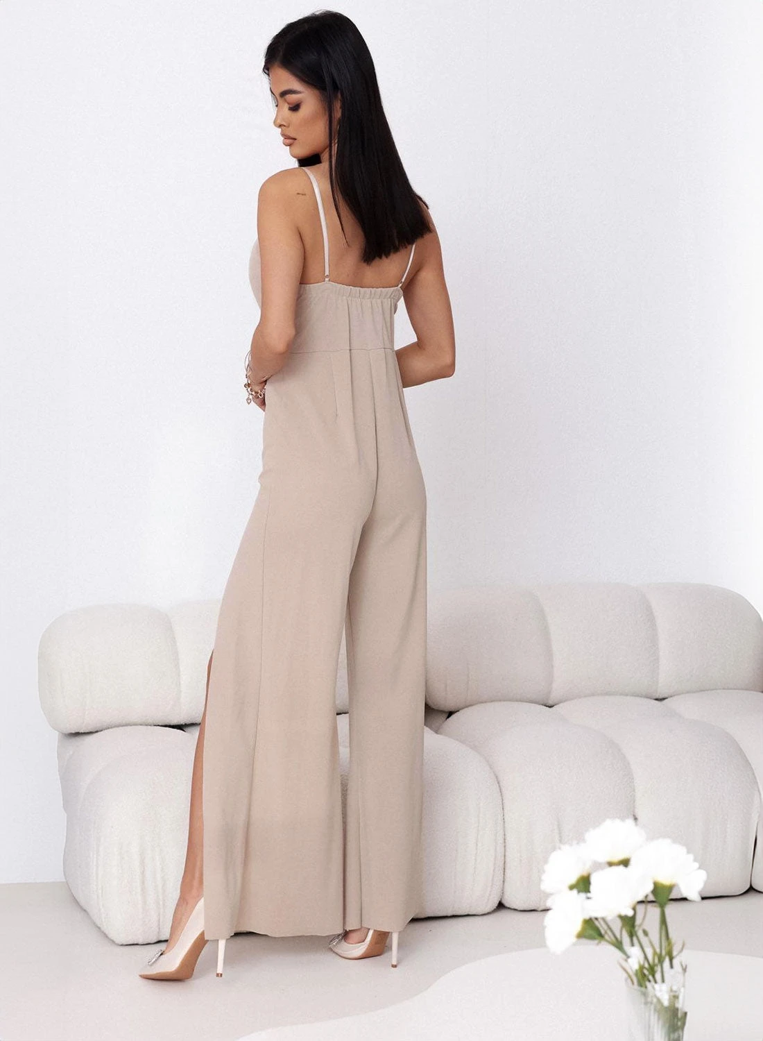 Esalta il tuo stile con questa tuta beige elegante, caratterizzata da spacchi audaci sulle gambe che donano un tocco di sensualità e movimento ✨. Il design aderente valorizza la silhouette, mentre le spalline sottili e il corpetto sagomato aggiungono un’aria raffinata e femminile.