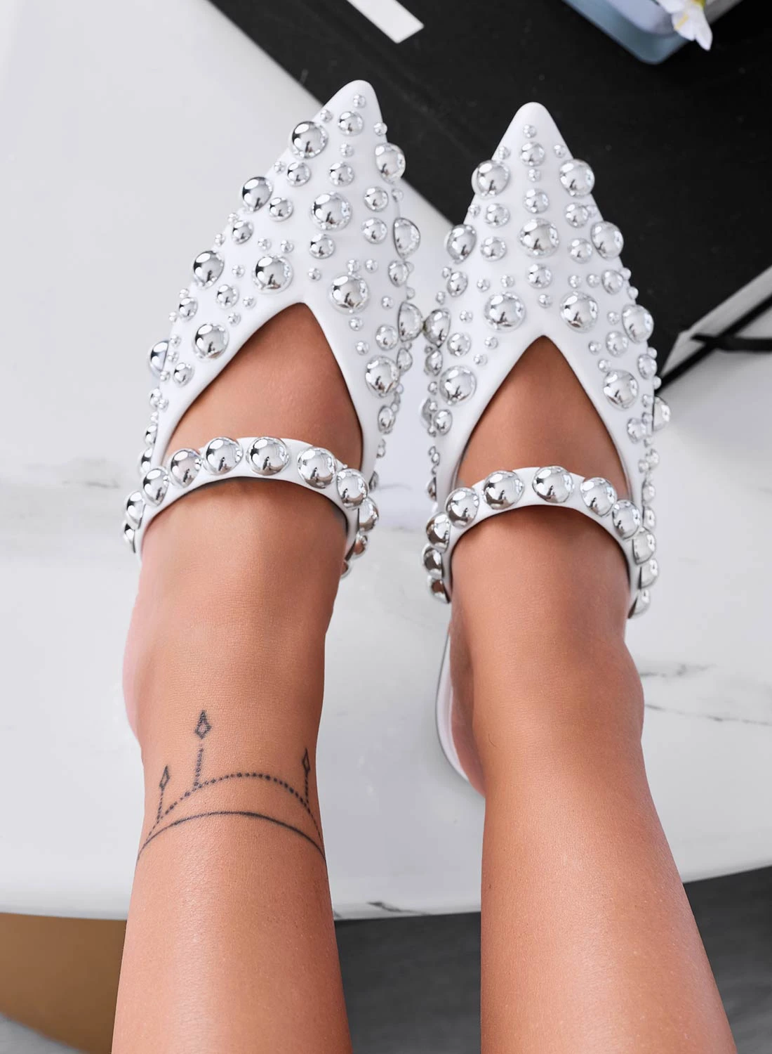 WILDA – Ballerine A Sabot Bianche A Punta Con Borchie A Sfera