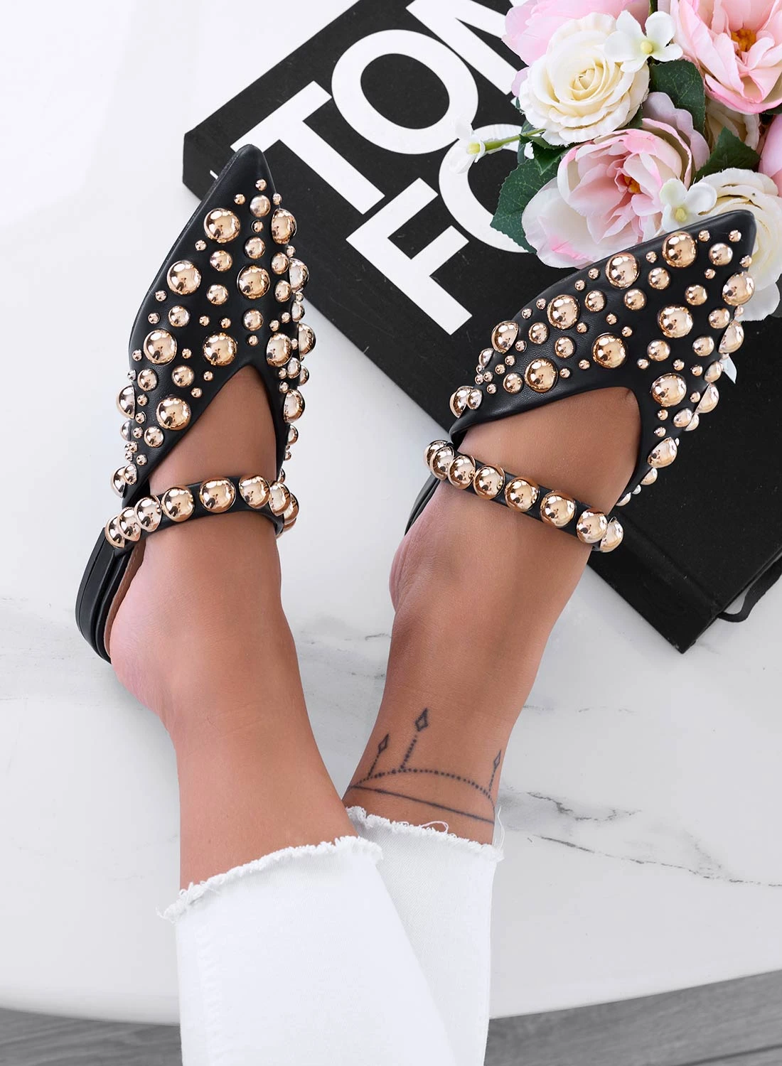 WILDA – Ballerine A Sabot Neri A Punta Con Borchie A Sfera