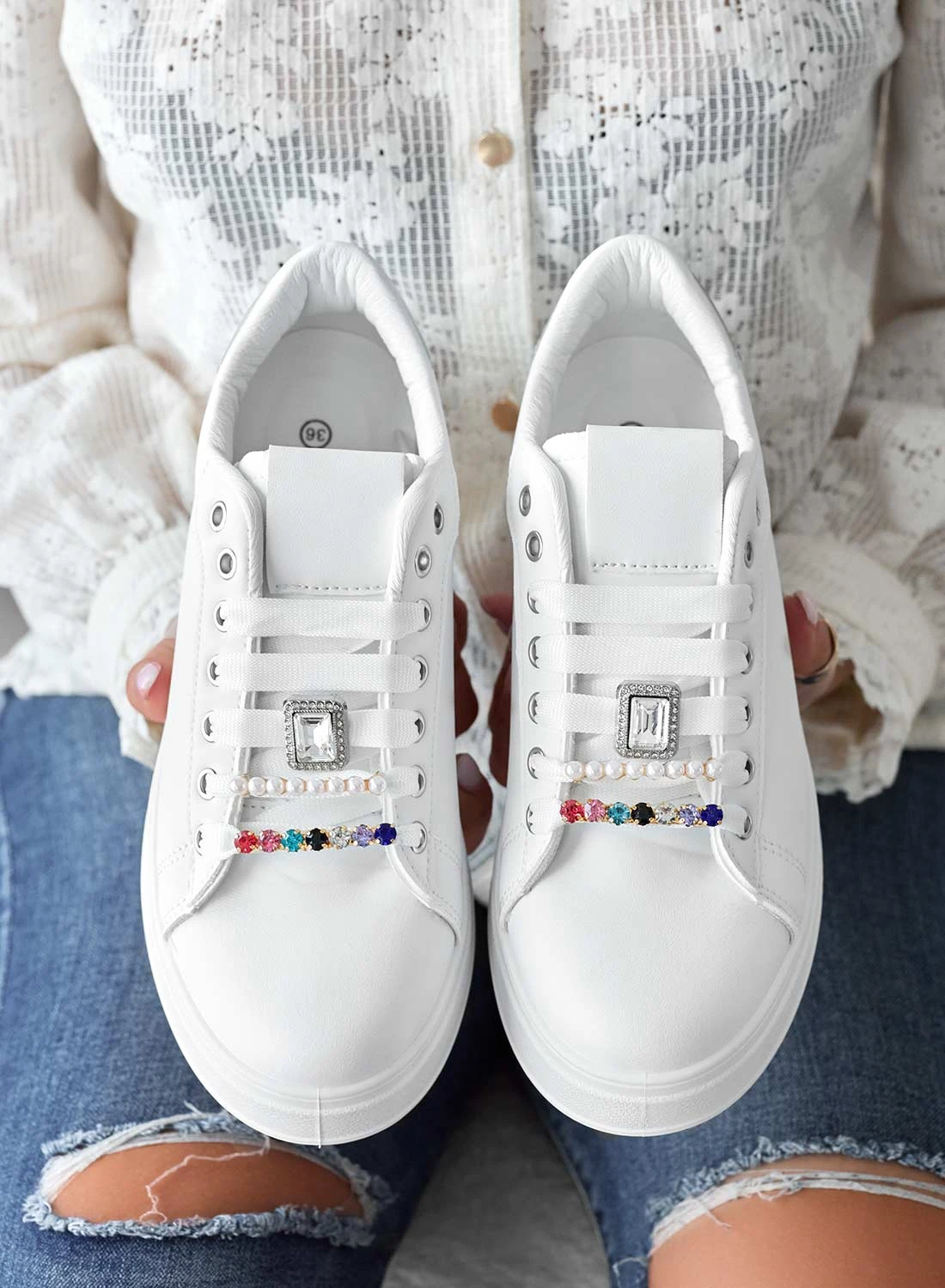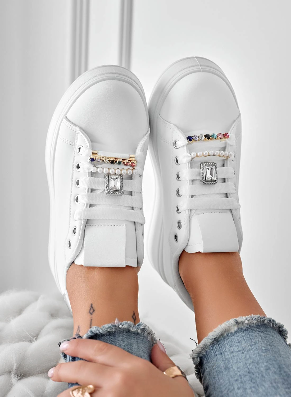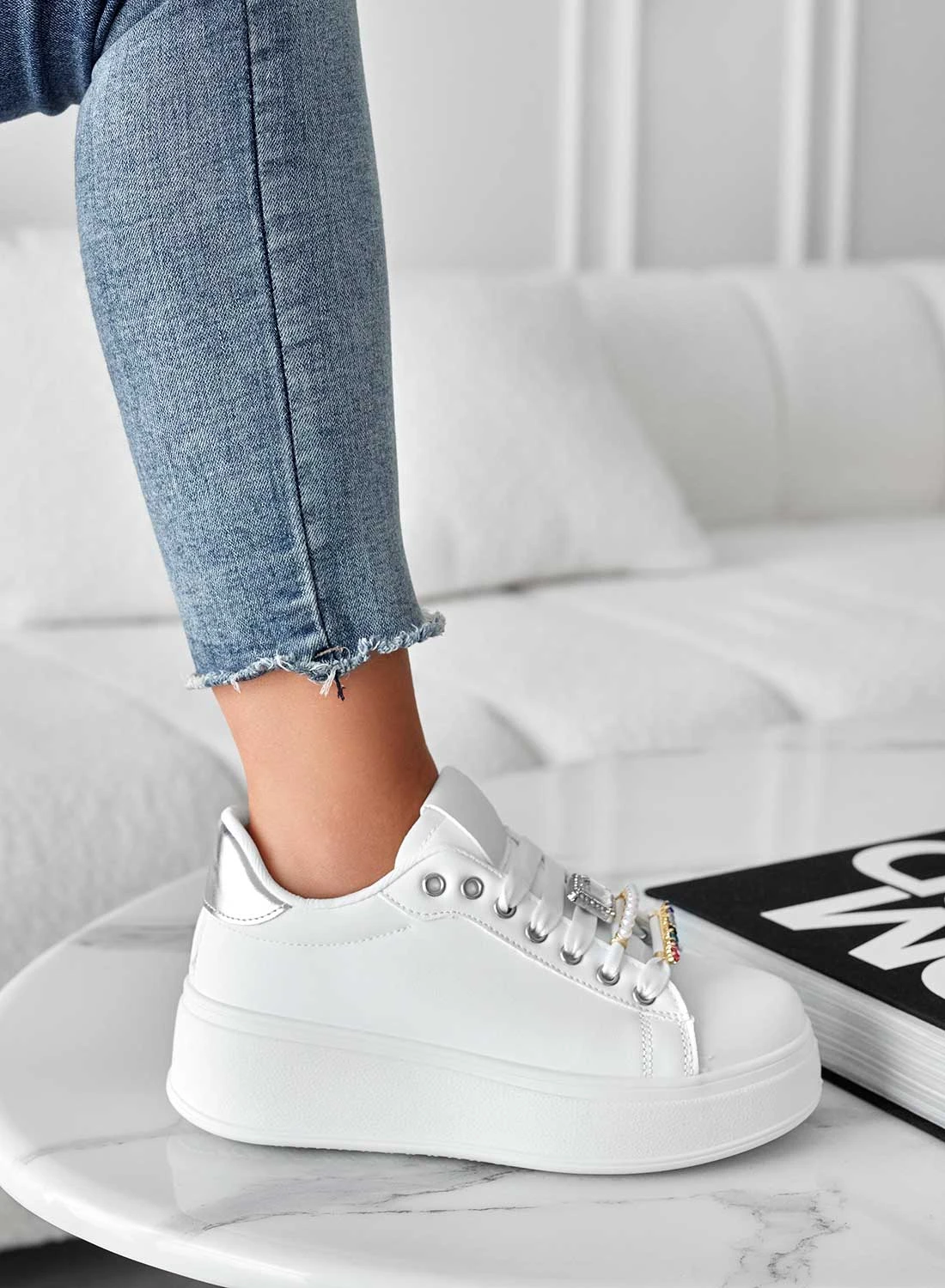 XIMENA – Snealers Bianche Con Applicazione Gioiello E Retro Argento